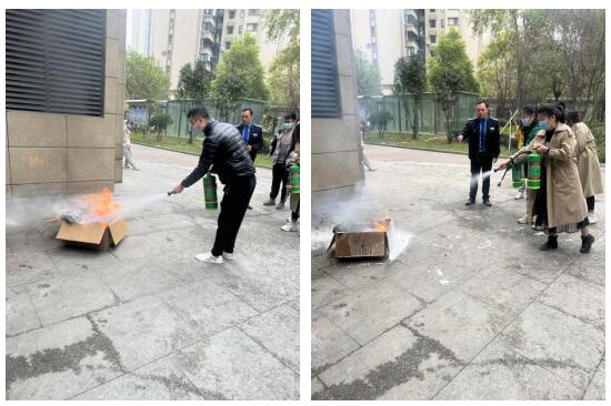 隨后,全體人員開展消防滅火演練。向陽細致講解了滅火器和消防栓的使用方法,通過通俗易懂的“提拉拔壓”口訣,讓大家更容易掌握手提式滅火器和消防栓的使用知識。在室外實操環(huán)節(jié),參訓(xùn)人員逐個進行上手使用滅火器的演練,確保在緊急情況時能夠有效應(yīng)對。