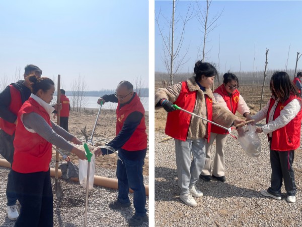 經(jīng)過一個多小時的揮汗奮戰(zhàn),百余棵楊樹苗飽飲甘霖,一排排整齊地站立在黃河灘上,成行成列,昂然挺立,它們仿佛一個個勇武的衛(wèi)士駐扎在聊城大地上,忠誠地守護(hù)著黃河母親,盎然綠意在黃河廊道上蓬勃生長。植樹活動結(jié)束后,志愿者們在黃河岸邊開展了垃圾撿拾活動。