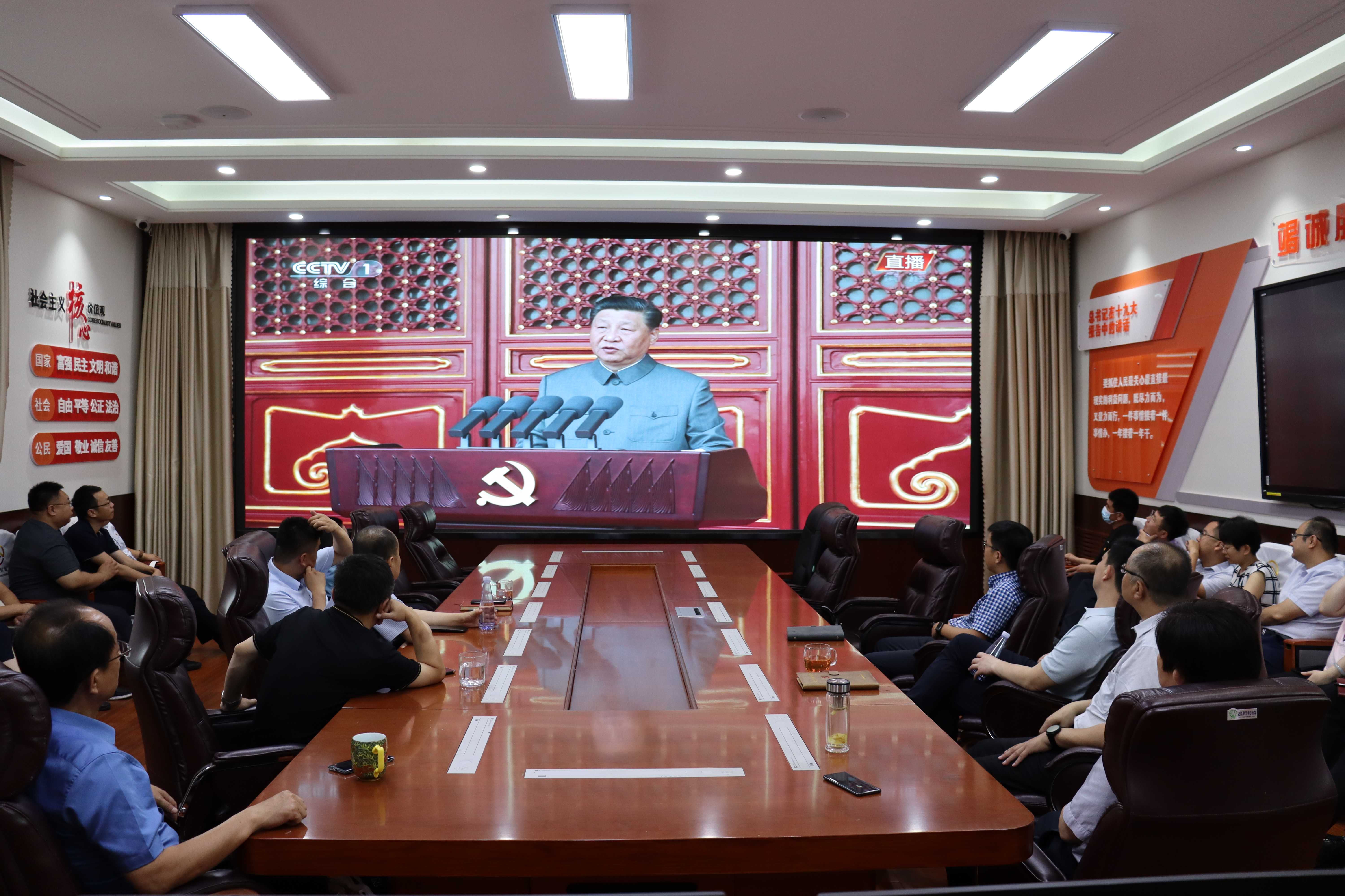 7月1日上午8時,慶祝中國共產黨成立100周年大會在北京天安門廣場隆重舉行,中共中央總書記、國家主席、中央軍委主席習近平發(fā)表重要講話。市財金公司及各子公司組織干部職工集中觀看大會直播。