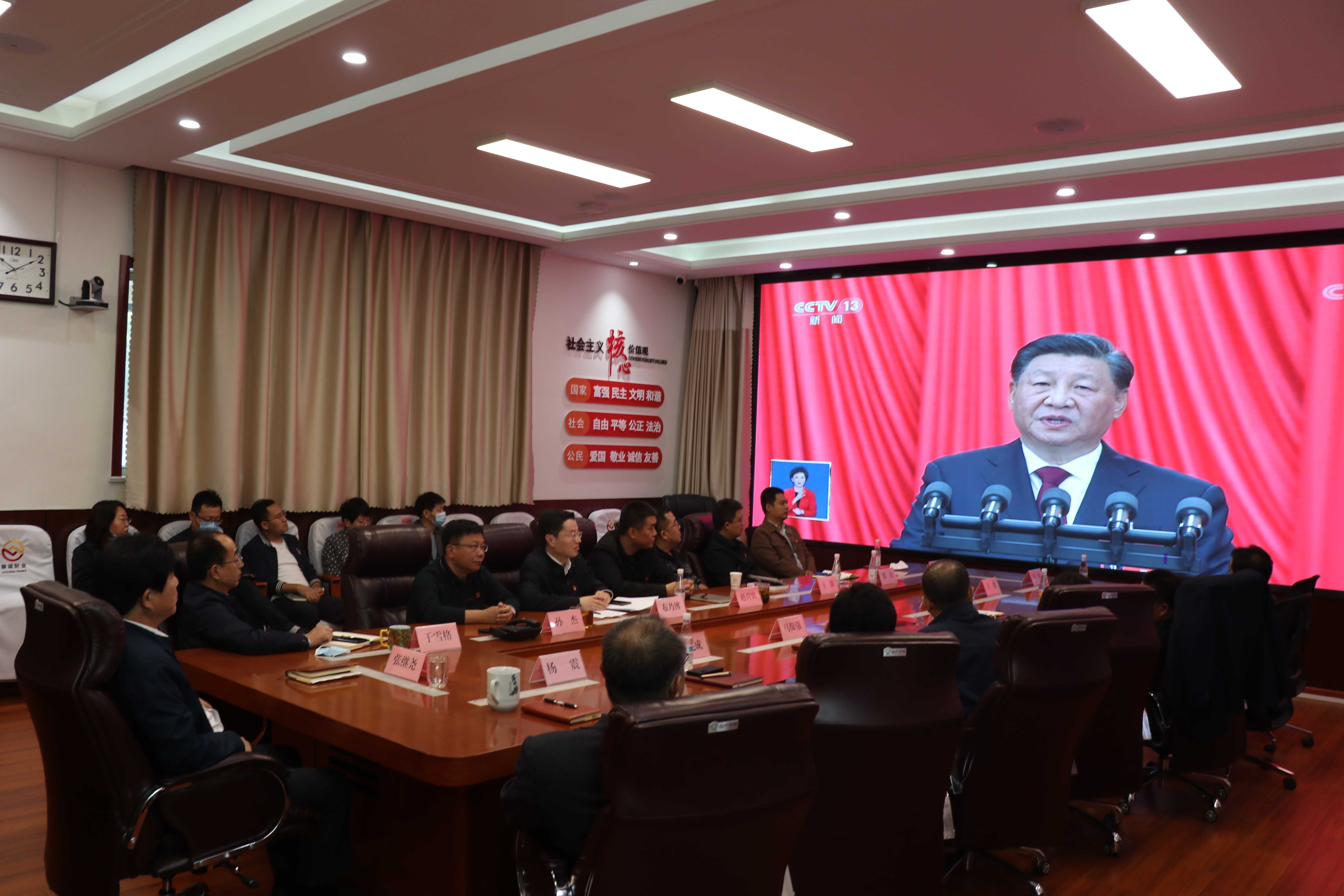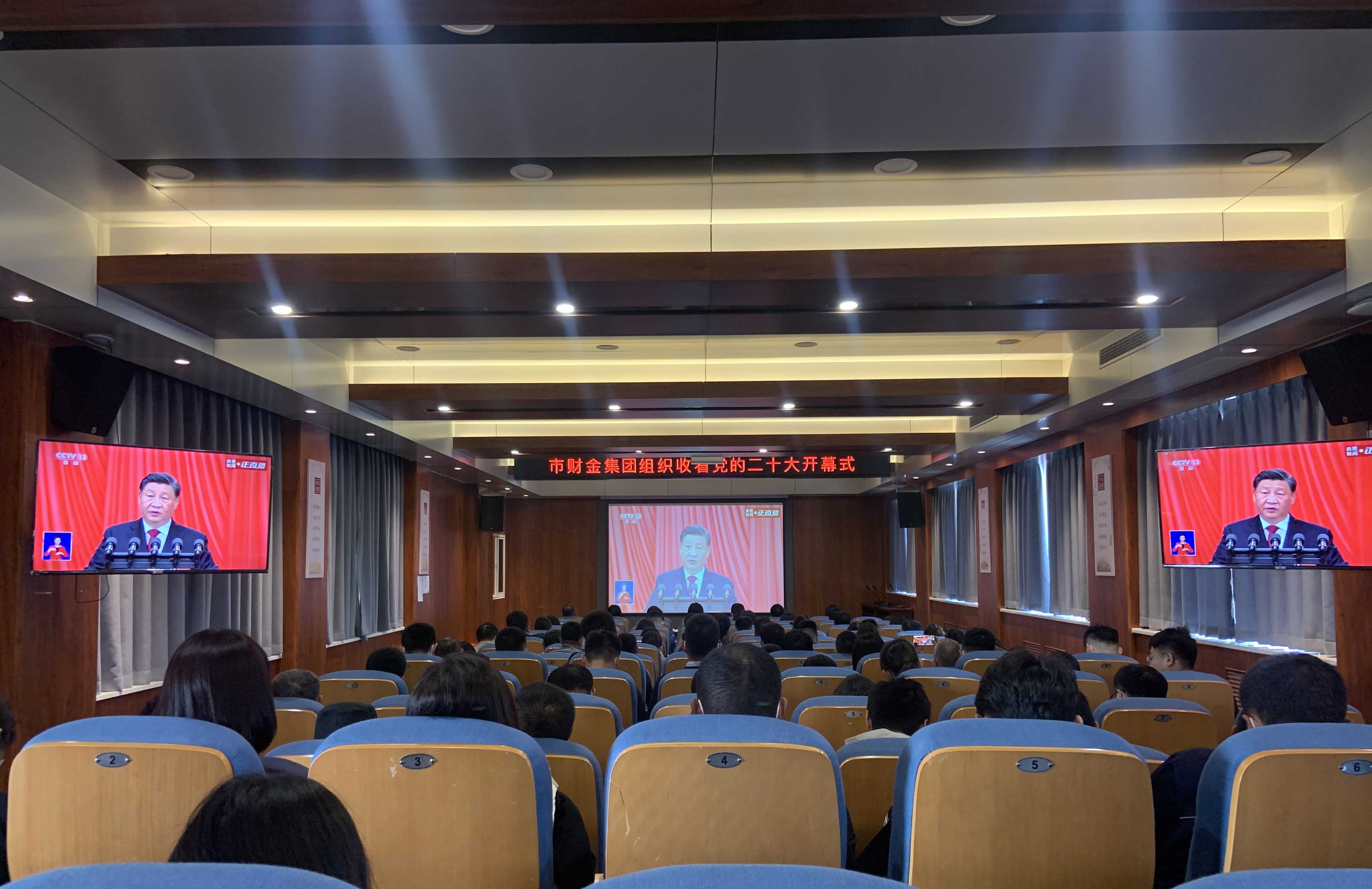 財金集團(tuán)組織全體干部職工收聽收看中國共產(chǎn)黨第二十次全國代表大會開幕式現(xiàn)場盛況直播,認(rèn)真聆聽習(xí)近平總書記代表第十九屆中央委員會向大會所作的工作報告。